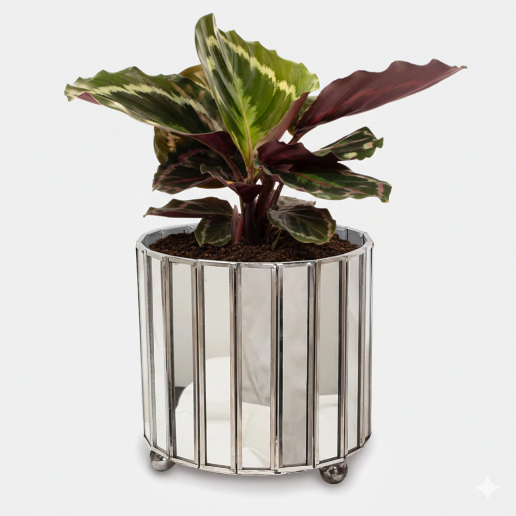 The Calathea Medallion is one of the most striking indoor plants you can add to your home. Its large, round leaves feature bold, medallion-like patterns in deep and light green, highlighted with silvery detailing. Turn a leaf over and you’ll find a rich, velvety purple underside—creating an elegant two-tone display that looks stunning from every angle.