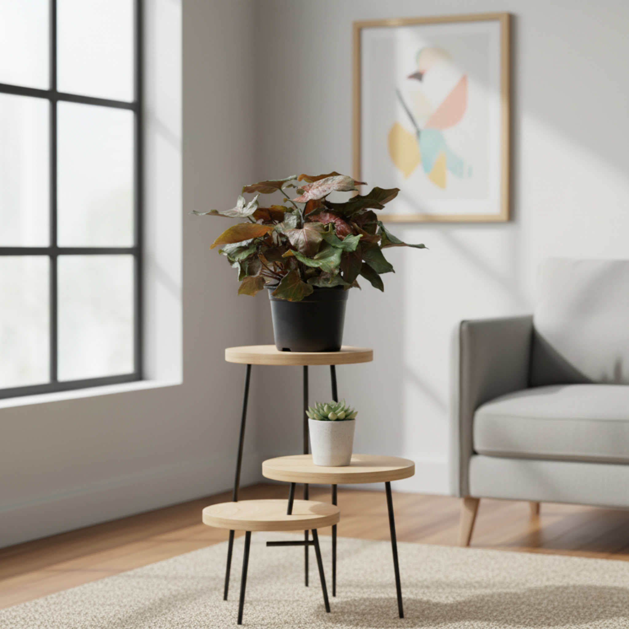 Syngonium Maria adapts beautifully to different spaces, whether styled on a desk, a shelf, or as part of a lush indoor collection. Its climbing nature also allows you to train it on a trellis or let it trail naturally for a softer look.